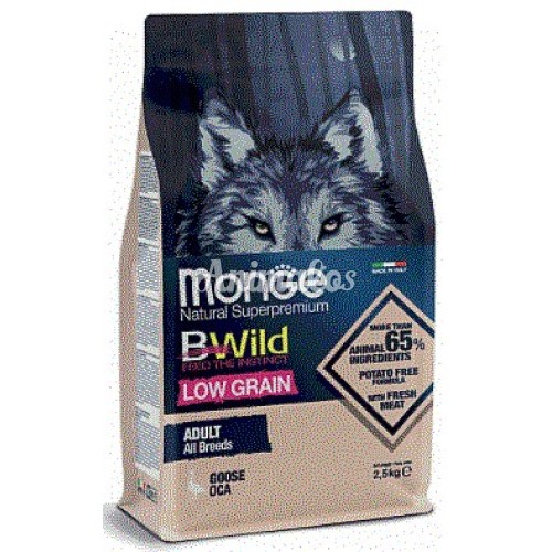 מזון לכלבים בוגרים מכל סוגי הגזעים מונג' - MONGE סדרת הבי וויילד Be Wild של מונג' מכוונת לבעלים שמעוניינים לתת לחיות המחמד שלהם אוכל "כמו שהתכוון הטבע". המוצרים בסדרה מכילים יותר בשר טרי ואיכותי, ללא דגנים, ואינם מכילים חומרים משמרים או צבעי מאכל. בLow Grain Goose All Breeds Adult מונג' התאימו לכלבים מכל הגזעים תזונה טבעית ומזינה הכוללת בשר אווז איכותי ומשולב עם פירות יער וירקות שמרכיבים ארוחה מלאה, ללא תפוח אדמה. בנוסף המזון מכיל פרוביוטיקה לשמירה על בריאות המעיים, אומגה 3 ו6 לפרווה בריאה.