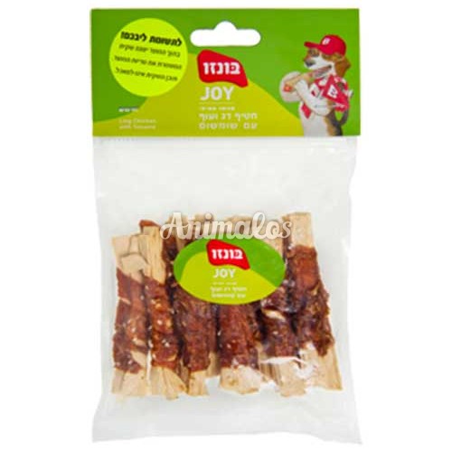 חטיף בונזו ג'וי מספק לכלב נשנוש זמין, טבעי ובריא, עתיר חלבון ודל שומן! חטיפי בונזו ג'וי אינם מכילים תוספים, חומרים משמרים או צבעי מאכל והם בעלי טעם וריח שכלבים מאוד אוהבים.